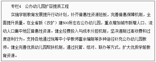 ——学前教育更加普及普惠优质安全。学前教育毛入园率达到96.5%,普惠性幼儿园覆盖率保持在86.5%以上,公办园在园幼儿占比保持在55%以上,力争通过国家县域学前教育普及普惠督导评估认定的县(市、区)达到30%以上。