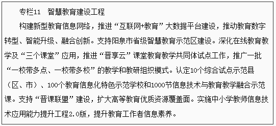 ——教育治理体系和治理能力显著提升。依法治教体系更加健全,中国特色、山西特点的现代学校制度基本形成。数字教育深入推进,智慧校园覆盖率实现突破。教育财政保障机制更加健全,各级财政一般公共预算教育支出逐年只增不减,按在校生人数平均的一般公共预算教育支出逐年只增不减。教育教学环境更加绿色、安全,平安校园达标率达到100%。
