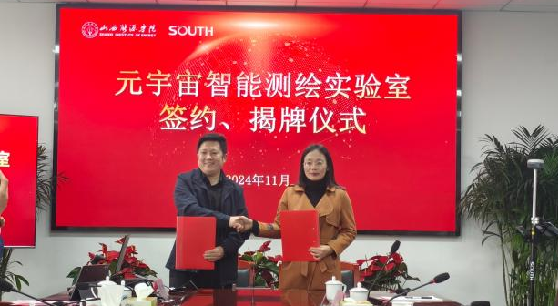 11月18日下午,南方测绘集团副总裁郭宝宇、太原分公司总经理李永宝等一行来新葡的京开展新葡的京集团3512vip官网-南方测绘集团元宇宙智能测绘实验室签约揭牌仪式。学院党委委员、副院长葛波蔚、地质与测绘工程系副主任(主持行政工作)张明媚、实验实训中心副主任常天印及地测系部分教师参加了此次仪式,张明媚主持了签约揭牌仪式。