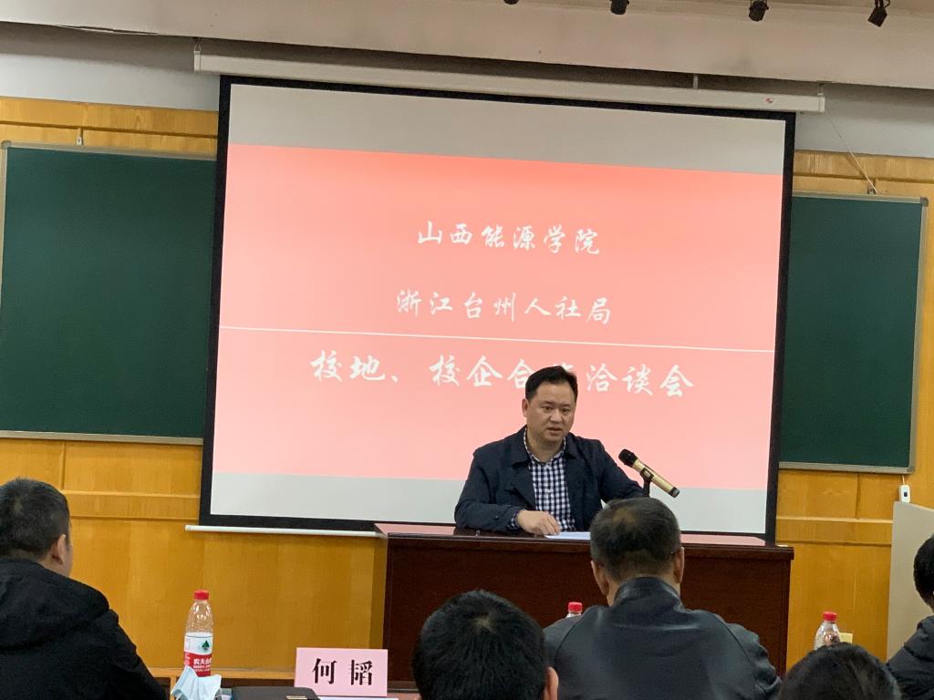招生与就业工作处魏安民处长介绍了我院人才培养目标、办学规模、师资力量和教学科研仪器设备等基本情况,以及在应用型人才培养模式和办学机制等方面的探索实践和取得的成果。强调学院是一所快速发展的应用型本科院校,毕业生就业地域分布在全国23个省市自治区,2020届有30.82%的已就业毕业生选择在外省就业,其中有较多毕业生集中在江苏、浙江等沿海地区就业,我院在毕业生就业、学生实习见习、校企联合培养人才和产学研资源平台共享等方面都有合作需求,具有与浙江台州开展校地校企合作的良好基础。