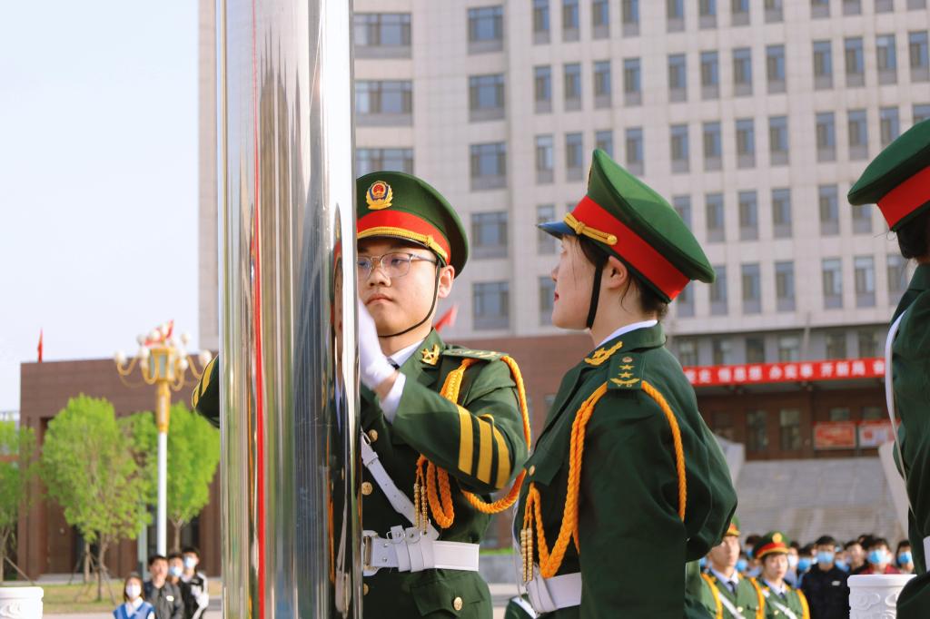 紧接着,伴随着《青春绽放》的激昂旋律,两面校旗在清晨微凉的春风中缓缓升起,全体师生注视着红蓝两面校旗,如同火焰一般点燃了同学们内心的无比热情,成为新葡的京集团3512vip官网的上空的一抹绚丽的色彩。