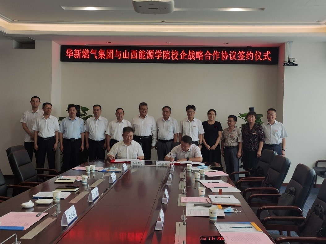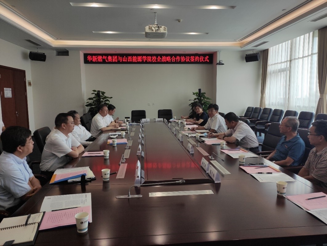 8月11日上午,梁卫国院长带队前往华新燃气集团有限公司进行技术交流并签署战略合作协议。副院长孟文俊及科技产业部部长孟秀峰、人事部部长张秀山、强基学院院长相兴华、矿业工程系主任杨万斌、能源与动力工程系主任侯红随行参加活动。华新燃气集团有限公司党委书记、董事长刘军,党委副书记、副董事长、总经理崔建军,党委委员、董事、副总经理张文元,党委委员、董事、副总经理翟慧兵,山西国新气体能源研究院有限公司董事长陈刚,山西蓝焰控股股份有限公司总经理田永东,集团技术中心主任白建平,新能源发展中心主任刘祺等领导出席签约仪式。