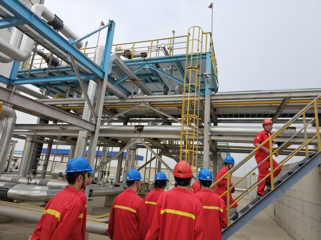 在帅安液化石油气有限公司,学生们学习了液化石油气的储存、加压、气化及外输的全过程。面对复杂的设备,学生们积极提问并记录流程要点,例如充装前气瓶残液的处理方法以及气瓶充装量的标准。液化石油气在低温高压条件下被安全地储存在储罐中,需要时通过泵加压送入气化器,气化后再通过管道输送到用户端。整个流程严谨而高效,体现了油气储运工程的专业性和安全性。