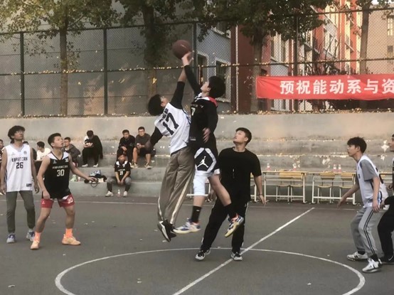 一声哨响点燃青春,篮球比赛拉开序幕。能动系与资环系的篮球运动员们在球场上闪耀。突破、上篮、快攻、抢断,队员们个个雄姿英发,在球场上挥洒着热血和青春。抢球、防守、进攻,动作连贯,行云流水,一气呵成。汗水、泪水,流露出对胜利的向往;心中斗志,如烈火在球场中燃烧;胸怀信念,凝聚成坚定的目光。笃志前行,虽远必达。