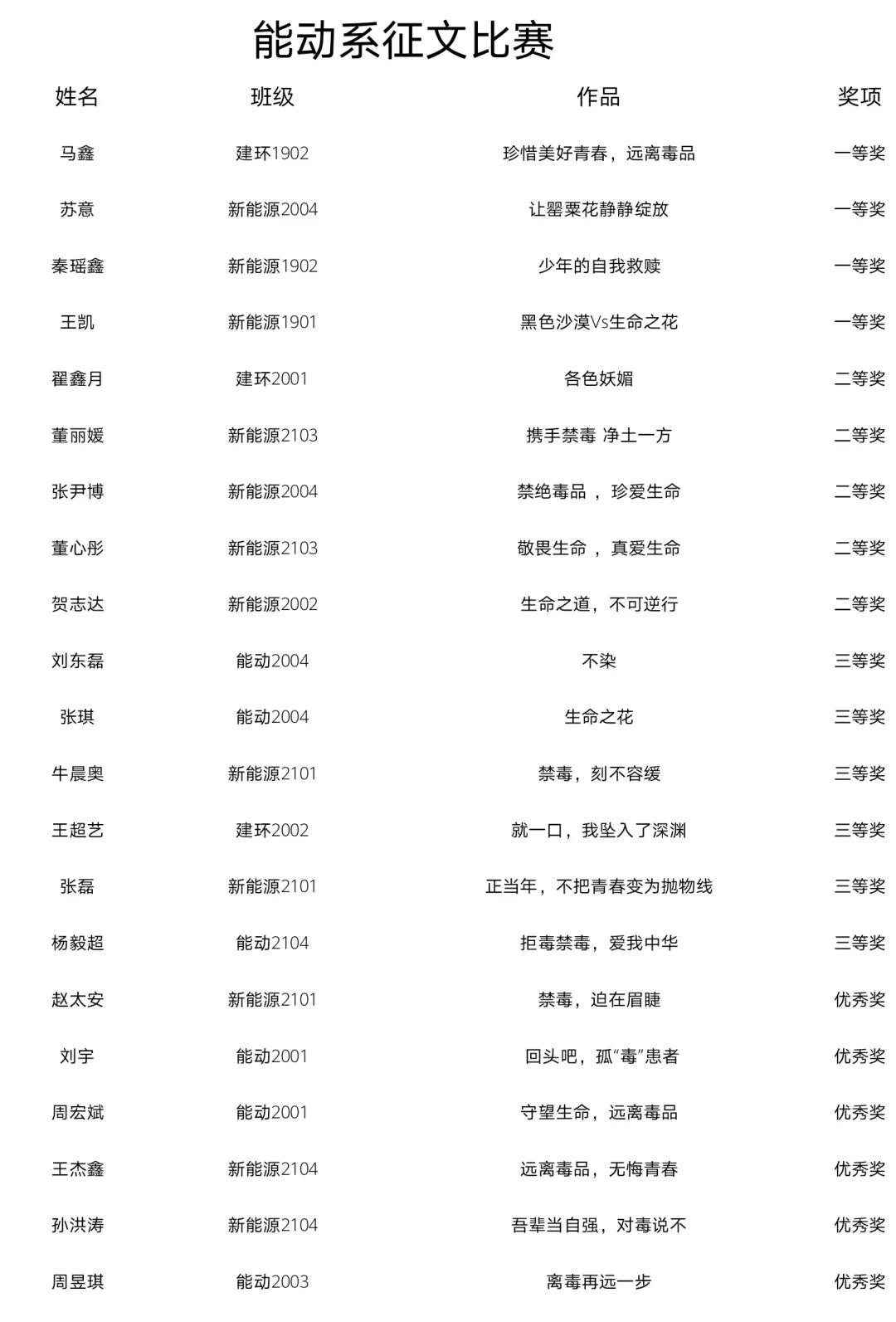 希望通过本次征文活动,能让同学们更加深刻地了解和认识毒品问题的有关知识,深刻认识毒品对个人、对家庭、对社会的巨大危害,同时也希望同学们能增强识毒、拒毒、防毒意识,提高抵御毒品侵蚀能力,享受“绿色无毒,健康人生”。