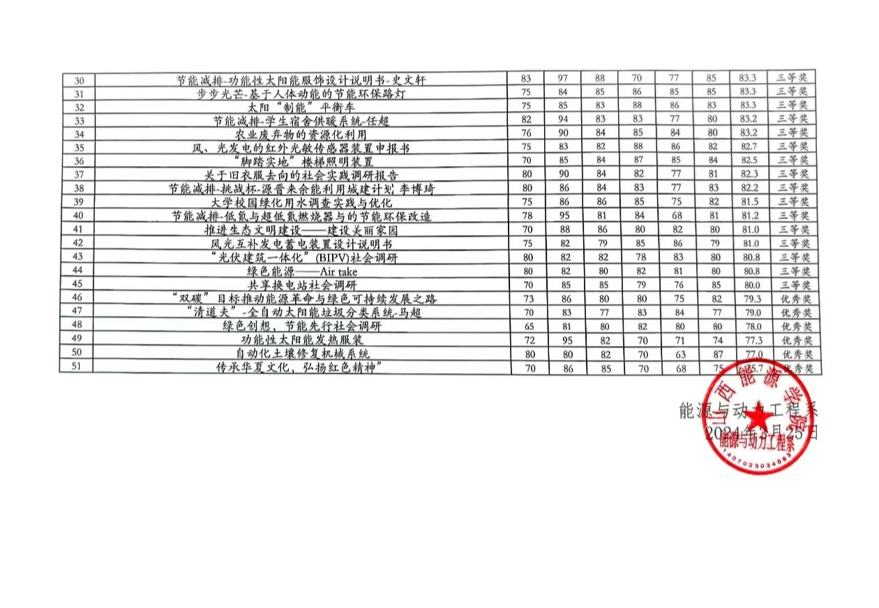 为贯彻落实《全国大学生节能减排社会实践与科技竞赛》《中国可再生能源学会大学生优秀科技作品大赛》精神,充分体现“节能减排,主动作为;实践创新,交融育人”的精髓,能源与动力工程系积极动员学生参与比赛,竞赛共收到51项作品,经过系级评审,推选出了一等奖10项,二等奖15项,此外还评出了三等奖20项,优秀奖6项。