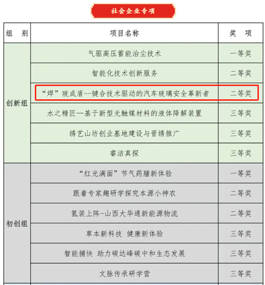 决赛中,曹益宁团队项目《“焊”玻成盾——键合技术驱动的汽车玻璃安全革新者》荣获省级二等奖。该项目通过创新性的键合技术,在提升汽车玻璃安全性方面具有广泛的应用前景,并得到了评审专家的一致好评。