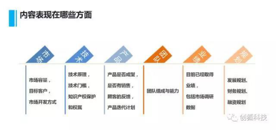 参赛团队应该对项目的“市场”“技术”“产品”“团队”“业绩”“规划”六方面对都有过思考,而且对此进行自查,知道项目的短板。